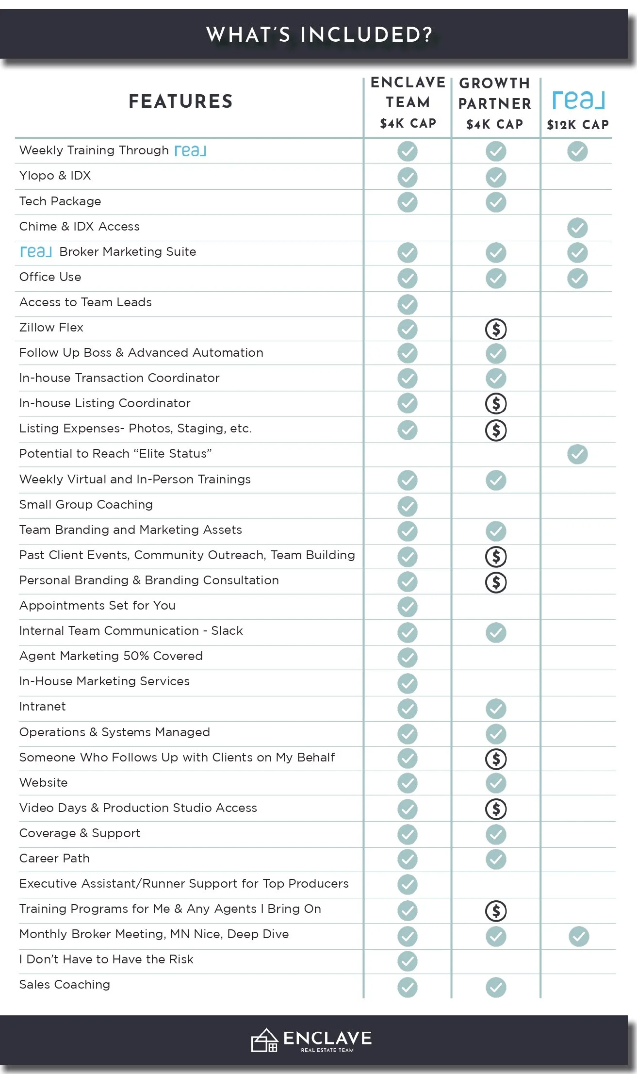 When you join Enclave, you’re joining a group of agents who are committed to their real estate career and being market experts. We believe there is no shortage of business and we all win through personal growth and by collaborating as a like minded community. The extended community and network we have has some of the top agents, coaches, and marketers in the industry.